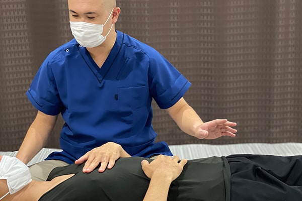 呼吸コンディショニングでは、呼吸するときの胸やお腹の動きに焦点をあて、その動きの改善を図ることで体調の向上につなげていきます。